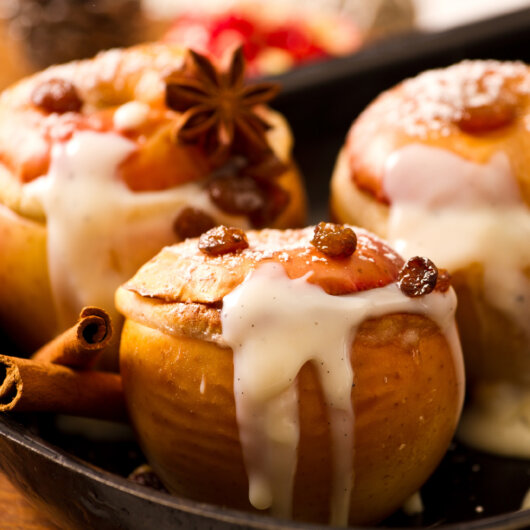 Wir haben das beste Rezept für eine Bratapfel-Füllung für euch, die an Weihnachten einfach nicht fehlen darf. Mit verschiedenen Nüssen, Marzipan und anderen Leckereien schmecken die Äpfel im Ofen gegarte einfach himmlisch. Mit selbst gemachter Vanillesoße ein unvergesslicher Genuss an kalten Weihnachtstagen.